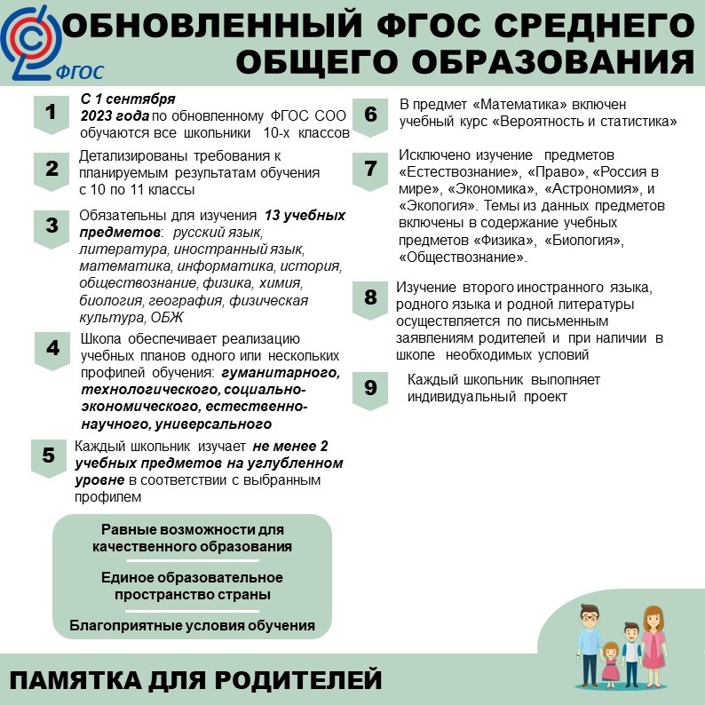С 1 сентября 2023 года обучающиеся 10 классов российских школ переходят на обновленный Федеральный государственный образовательный стандарт среднего общего образования (ФГОС СОО), утвержденный Приказом Минпросвещения РФ от 12.08.2022 № 732.