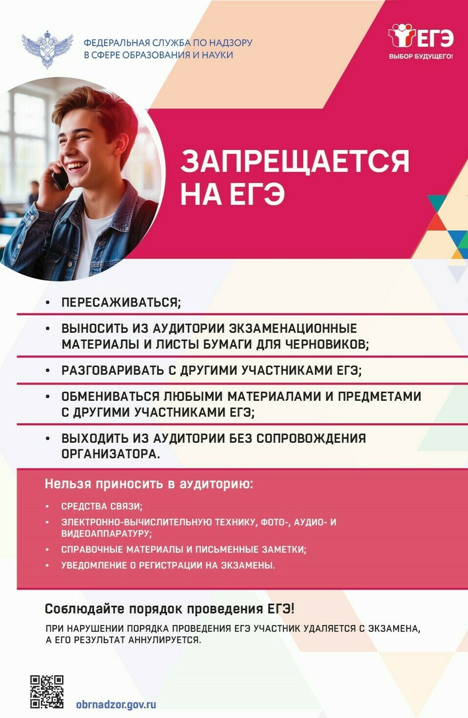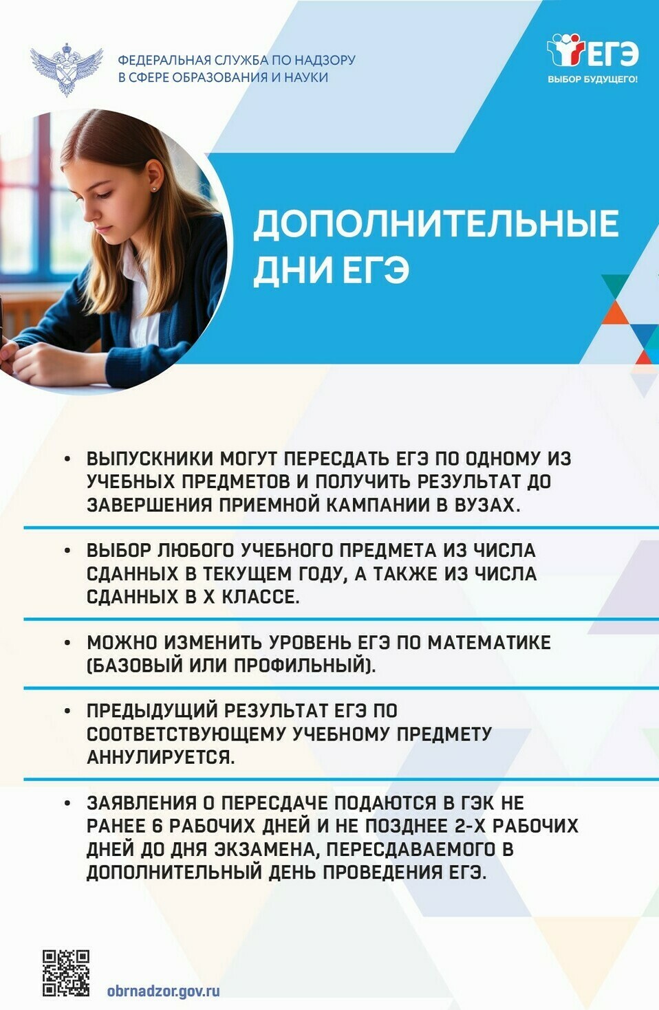 В соответствии с приказом Министерства просвещения РФ, Федеральной службы по надзору в сфере образования и науки от 07.11.2025 №798/1904 досрочный период сдачи ЕГЭ пройдет с 20 марта по 20 апреля, основной – с 1 июня по 9 июля, дополнительный – с 4 по 25 сентября.